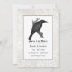 Gothic wedding save the date featuring a raven and a lace background with a skull damask pattern reverse.