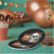 Serve up frightful fun with these festive Halloween paper plates! Featuring a spooky skull and smiling jack-o’-lantern surrounded by fall leaves and orange flowers, this hauntingly stylish design sets the perfect mood for your celebration. The bold orange and black spooky design make it ideal for any Halloween table setting.