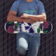 Skulls and Roses in a cool tattoo style design, sure to make a statement off the ramp and in the air at the skateboard park