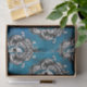 White skulls inside gothic frames are over a teal background. Very Halloween! Perfect for decoupage, paper crafts, or gift wrapping. Make sure to check out the matching gift bag!