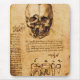 Skull and teeth from the ancient anatomical studies of Leonardo da Vinci, pen and brown ink on paper with old aged parchment ,grunge effects.