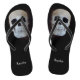 Skull head beach flip sandals. Gothic black and white, scary custom design summer shoes. Text, font style, size and color can be changed to suit your needs. Cool, trendy, modern. Image copyright Marg Seregelyi Photography.