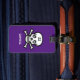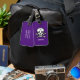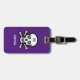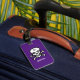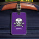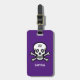 Skull on royal purple Luggage Tag. Texts and numbers ready to be personalised.
