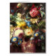 Vibrant floral still life sits atop a smiling skull. Rich jewel toned flowers embellish this important memento. Take time to smell the roses, and send a lovely greeting card...Customisable in your choice of background colour and text. What the heck are you waiting for?