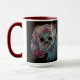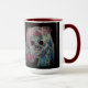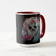 A Mug for those who love coffee and skulls. This skull is of a bride who may have been stood up by her groom on her wedding day but she waited so long that she passed away. It is a very sad story. The unique artwork is by Larissa Young.