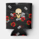 This women's or teen girl's can cooler or stubby holder features a skull surrounded by roses, razor blades, barbed wire and blood. It is contradictory, being romantic and violent at the same time.