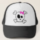 This hat is printed with a super cute skull and crossbone (complete with pink bow)