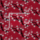 This design has a gothic floral design of cherry blossoms and skulls on a red background.