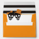 Skull couple and black, white stripes modern Halloween wedding envelope with initials. The upper of the inside of this envelope is covered with black and white stripes and a skull couple while on the lap there is your monogram.