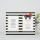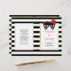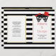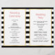 Skull couple with a red bow the bride and red hat the groom, and black and white stripes modern red Halloween folded wedding ceremony and party program. There are white frames with gold outline with your text.