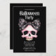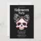 Skull Dots Black Bow Pink Horror Halloween Party Invitation
