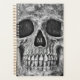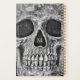Skull face close up Gothic grunge black and white design planner. Macabre, spooky, creepy, evil, sinister. Cool, trendy, modern, unique, scary Halloween inspired school supplies. Image copyright Marg Seregelyi Photography.