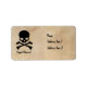 Rectangular address labels with antique parchment background and skull and crossbones black silhouette.