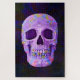 Skull head gothic neon purple blue day of the dead 1014 piece challenging jigsaw puzzle. Cool, trendy, modern, skeleton, spooky sugar skull design.You can click on "customize further" to change the size of the image to fit if you decide to change the size. Image copyright Marg Seregelyi Photography.
