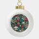 Skull in flowers ceramic ball christmas ornament