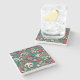 The coasters are gorgeous, a quality feel and heavy weight. They look like a precious archeological find. A rustic stone juxtaposed with a modern floral black and white print. I like the way the print goes slightly imperfect on the cut stone edges giving them a kind-of natural beauty.