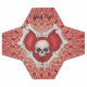 This soccer ball is red with white abstract lines in an intertwined pattern with a red read made of white bones with a skull in the centre of the heart. Customise your text with the template.