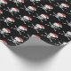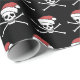 Christmas Wrapping paper featuring a pirate skull jolly roger with crossed bones in a Santa hat. Black background which can be customisable.