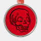 Metal Christmas Ornament with a skull. If you want to make your Christmas tree a little more goth or horror themed, then this cute little round ornament featuring a skull against a Christmasy red (or blood red) background. Give this skull Christmas ornament as a holiday gift to anyone who loves skulls, horror, spooky things, ghosts, etc.