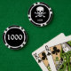 Skull n Bones poker chips are for gamblers who are murder mystery fans, horror fans, bikers, rockers, skull collectors, roleplay gamers, pirate reenactors, cosplayers, and other people who just happen to like skulls. Skull n Bones is Steamy Raimon original art and calligraphy.