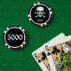Skull n Bones poker chips are for gamblers who are murder mystery fans, horror fans, bikers, rockers, skull collectors, roleplay gamers, pirate reenactors, cosplayers, and other people who just happen to like skulls. Skull n Bones is Steamy Raimon original art and calligraphy.