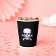 Skull n Bones paper cups are for horror fans, rockers, murder mystery fans, pirate reenactors, bikers, Goths, skull collectors, roleplay gamers, and people who simply like skulls. Skull n Bones is Steamy Raimon original art.