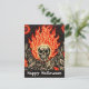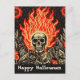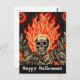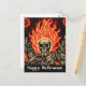Skull on Fire Linocut Art Happy Halloween Postcard