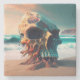 A large skull sits on top of the sand in the ocean, in the style of surreal 3d landscapes, intense color palette, redshift, vibrant illustrations, photo-realistic landscapes, textural explorations