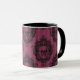 Introducing our spooktacular Halloween mug, where the eerie meets the whimsical in a mesmerising display of artistry. This mug features a striking black and green pattern adorned with skulls, all intricately framed within an elaborate scroll frame. The design is set upon a background of alternating light and dark pink stripes, adding a pop of colour and a touch of whimsy to the overall aesthetic.