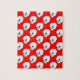 A pattern of white skulls on a red background. Original design with newsprint effect. Black, white and red cartoon image.