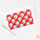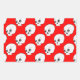 A pattern of white skulls on a red background. Original design with newsprint effect. Black, white and red cartoon image.