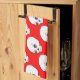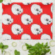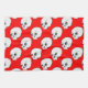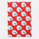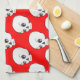 A pattern of white skulls on a red background. Original design with newsprint effect. Black, white and red cartoon image.