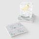 The coasters are gorgeous, a quality feel and heavy weight. They look like a precious archeological find. A rustic stone juxtaposed with a modern floral black and white print. I like the way the print goes slightly imperfect on the cut stone edges giving them a kind-of natural beauty.