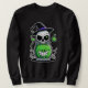 A halloween sweatshirt with a skull and a poison jar illustration.