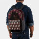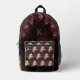 Dark gothic backpack featuring skulls and roses in black and burgundy personalised with a monogram, initials, name or your custom text in your choice of font styles, size, colour or placement or delete the sample text to leave the area blank in EDIT. ASSISTANCE: For help with design modification or personalisation, colour change, transferring the design to another product or if you would like coordinating items, contact the designer BEFORE ORDERING via the Zazzle Chat MESSAGE tab below or email makeitaboutyoustore@gmail.com.