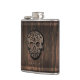 Skull Scroll on Faux Wood Textured Background Hip Flask