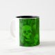 Beware of the skull spectres. When the ghostly phantom skulls appear from the swirling mist you'd better run... before it's too late! Mug with a green and black customisable design for you to add your own images, text, and ideas. Original artwork created using digital techniques by Jess Perry.