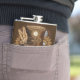 The flask itself is fine. It’s a cheap flask, obviously bought in bulk, however am prepared to overlook that. Given that it is a personalized item, I would have liked to have seen gift boxing instead of the generic packaging. Terrible printing, and/or quality. It’s a cheap, tacky vinyl. It is not cut straight and is also applied in a way that it is overhanging the bottom, causing the glue to catch on items and it will eventually roll and tear, damaging the wrap.