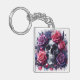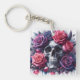 Skull Surrounded by Vibrant Roses Key Ring