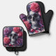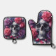 Skull Surrounded by Vibrant Roses Oven Mitt & Pot Holder Set