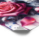 A detailed illustration of a human skull adorned with vivid pink and purple roses, symbolising a blend of beauty and mortality, set against an abstract artistic backdrop.