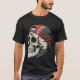 A bold and stylish illustration of a human skull, designed in a street art and tattoo-inspired style. The skull wears a snapback cap featuring intricate geometric patterns and leaf motifs, adding a unique and artistic touch. The cap is primarily red and black, with detailed decorative elements that create depth and dimension. The overall composition exudes a fierce, edgy, and urban vibe, reminiscent of gangster and street art aesthetics."