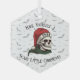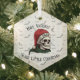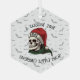 Skull Wearing Santa Hat Gothic Christmas Tree Ornament – Bring a spooky vibe to your holiday décor with this hexagonal glass ornament featuring a grinning skull in a Santa hat and green scarf. The eerie design is set against a white background with grey bats flying, making it the perfect blend of creepy and festive. The gothic-style font reads "Have Yourself a Scary Little Christmas," adding a dark holiday twist.
