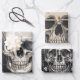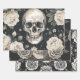 Skull White Rose Wrapping Paper Set of 3 Gothic Fl