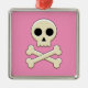 An illustration of a cartoon skull with bones for spooky halloween. This cute kawaii goth design is a gift idea for creepy or scary item lovers.