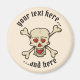 Beige skull cartoon sketch with hearts. Two text fields on circle.