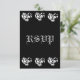 Having a gothic Valentine's party? How about a gothic wedding? Maybe a Halloween Wedding? Whatever the occasion, use these custom RSVP cards to include with matching invitations on a silvery, shimmery paper with hearts of skulls. All the text is customisable - what is here is just used as an example. Customise your party or wedding details and give your guests a real treat.