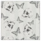 Custom fabric in a skulls and butterflies print. The hand drawn skulls and vintage butterflies are against a light grey striped background with a grungy old paper texture. This fabric is suitable for Gothic style crafting and sewing projects.
