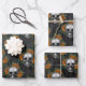Skulls and Orange Flowers on Charcol Wrapping Paper Sheet