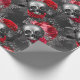 Skulls and Red Roses on Grey Wrapping Paper